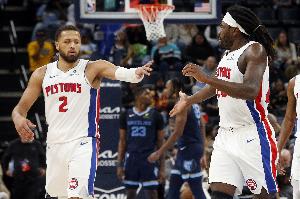活塞的战绩目前来到11胜2负,紧追联盟第一的雷霆的12胜1负。